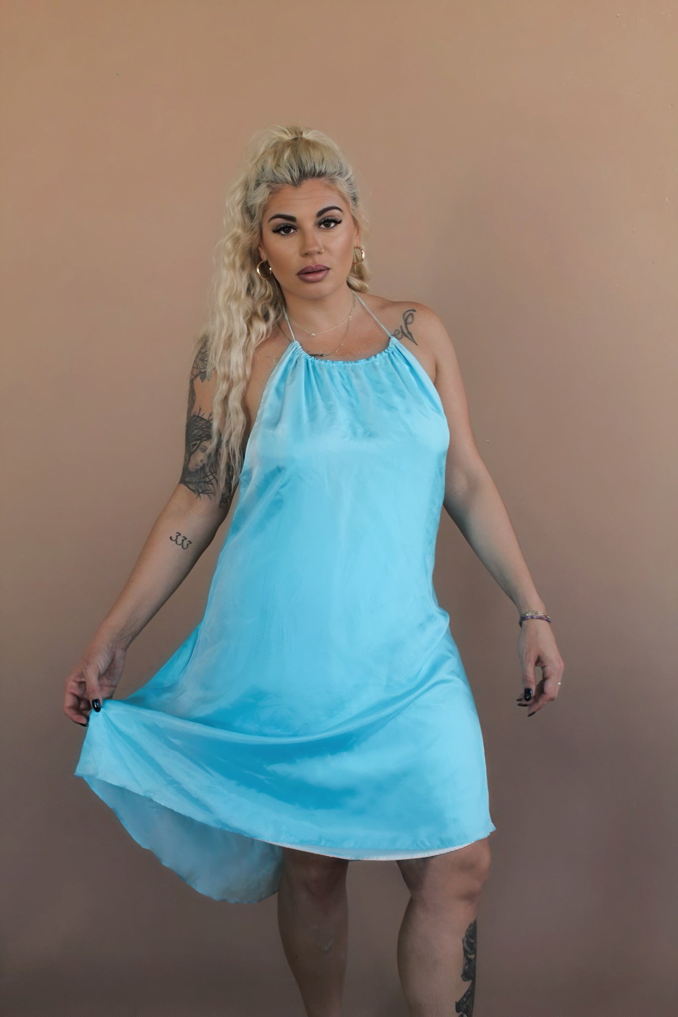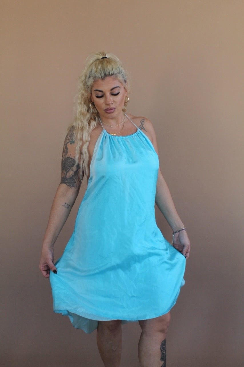 SKY BLUE BACKLESS SILK DRESS
