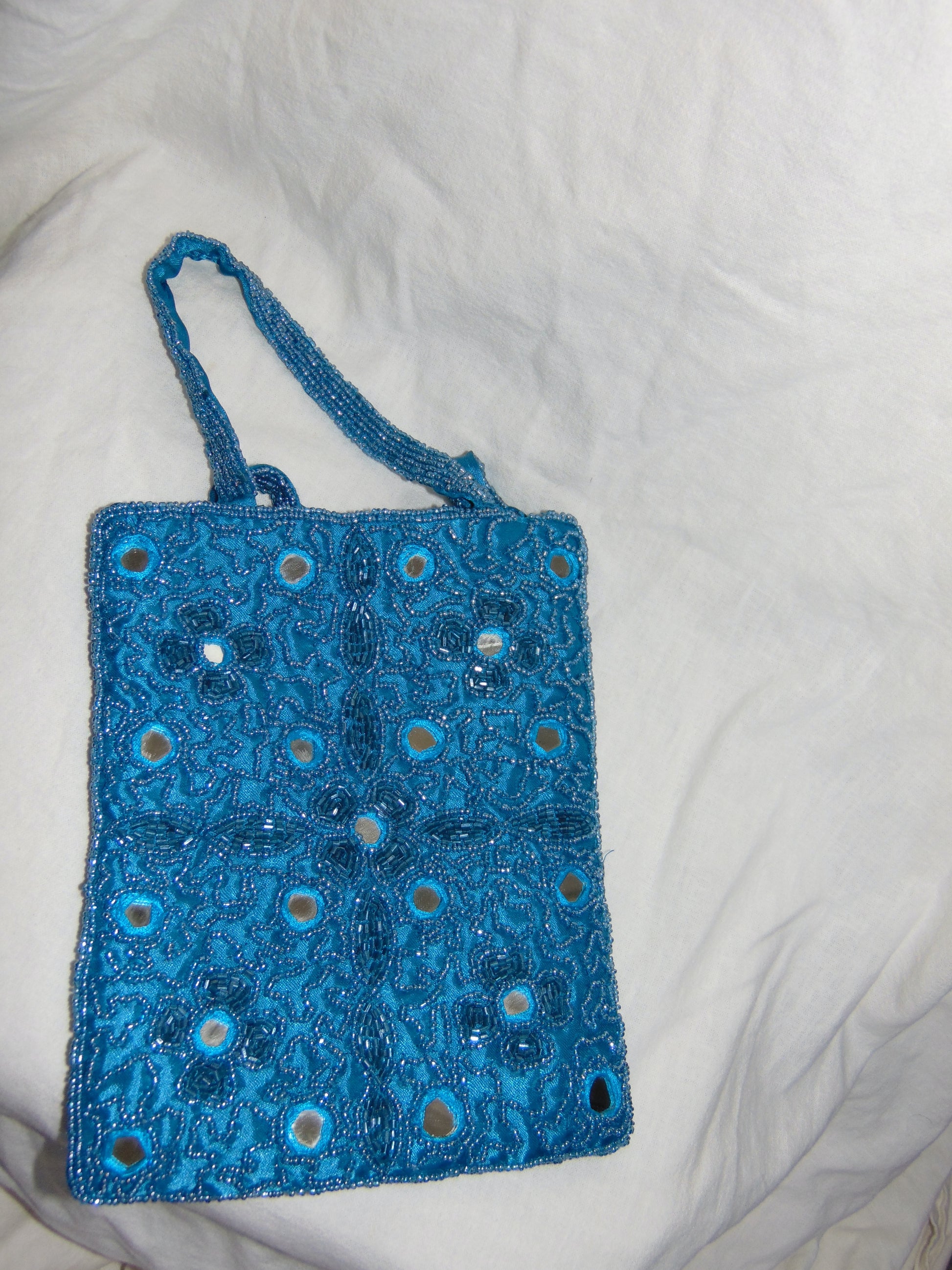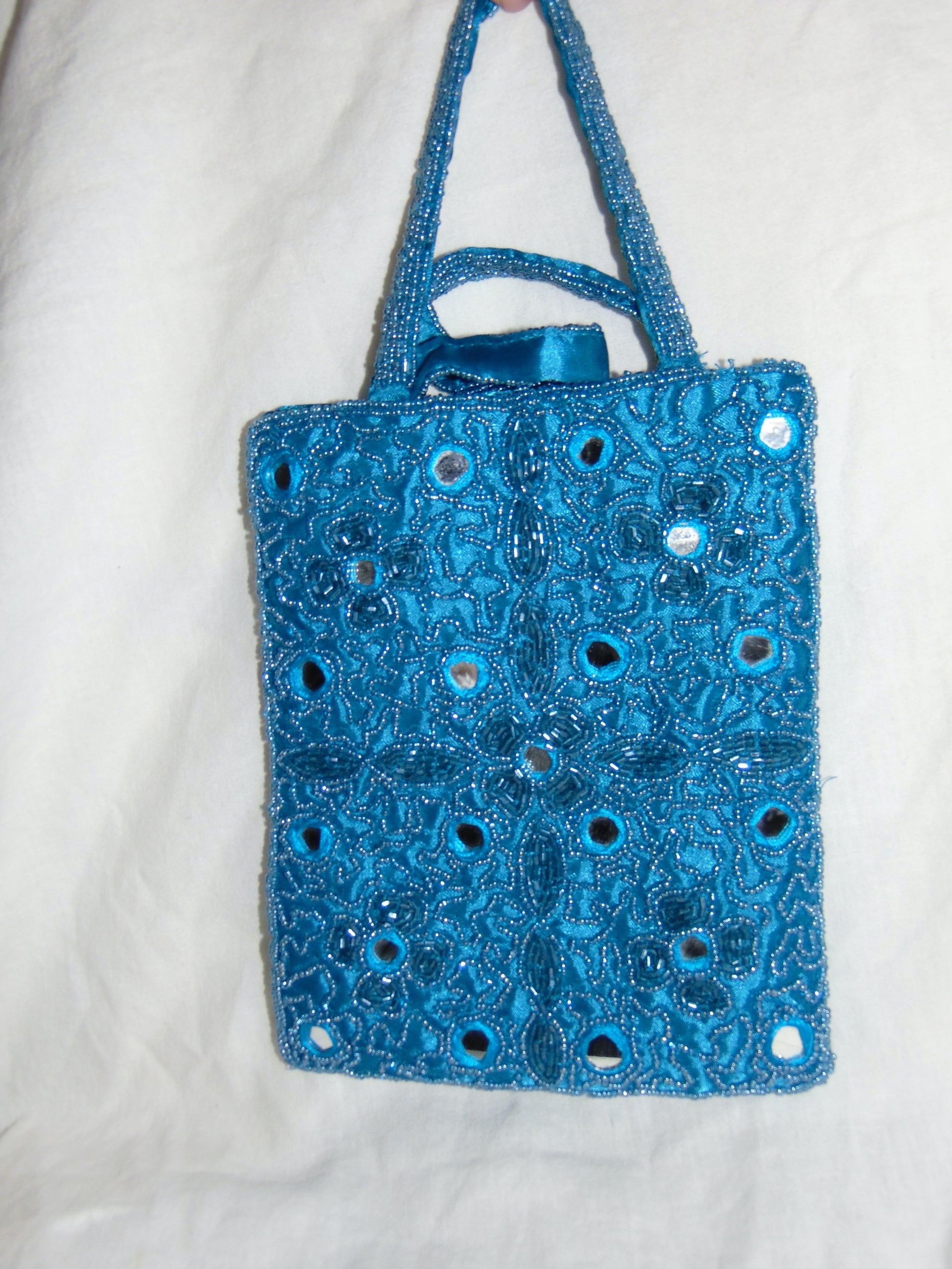 BLUE BEADED INDIAN SHISHA MINI TOTE BAG
