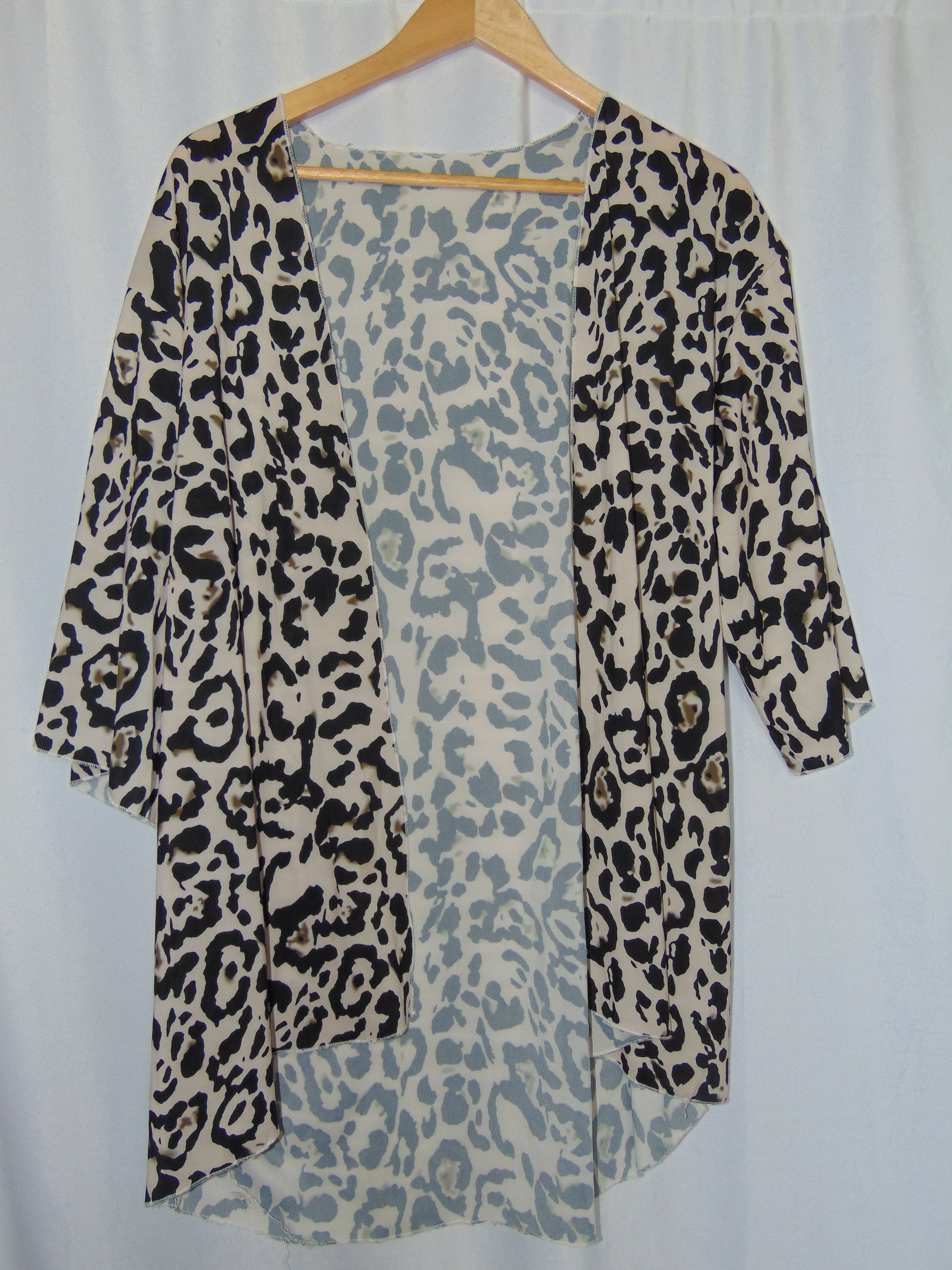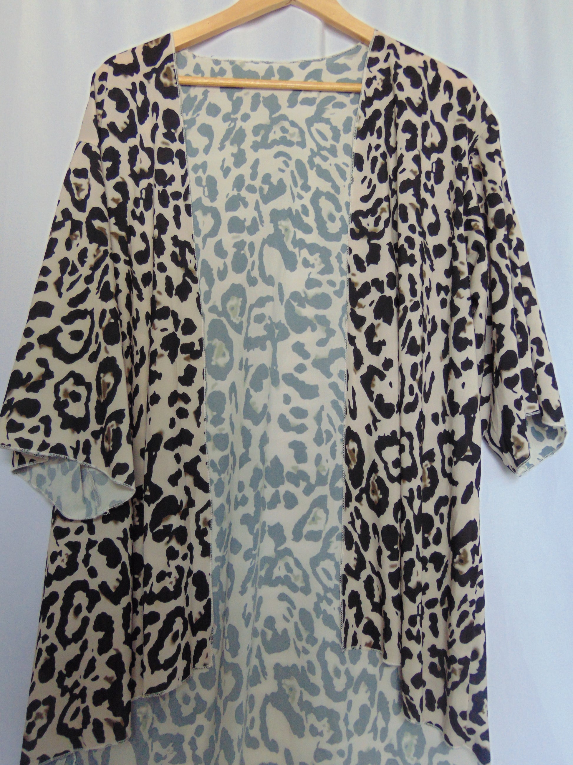 Oversized, neutral cheetah kimono by Leo Rossi. Perfect for a beach day coverup or a layer of fun for your fit.