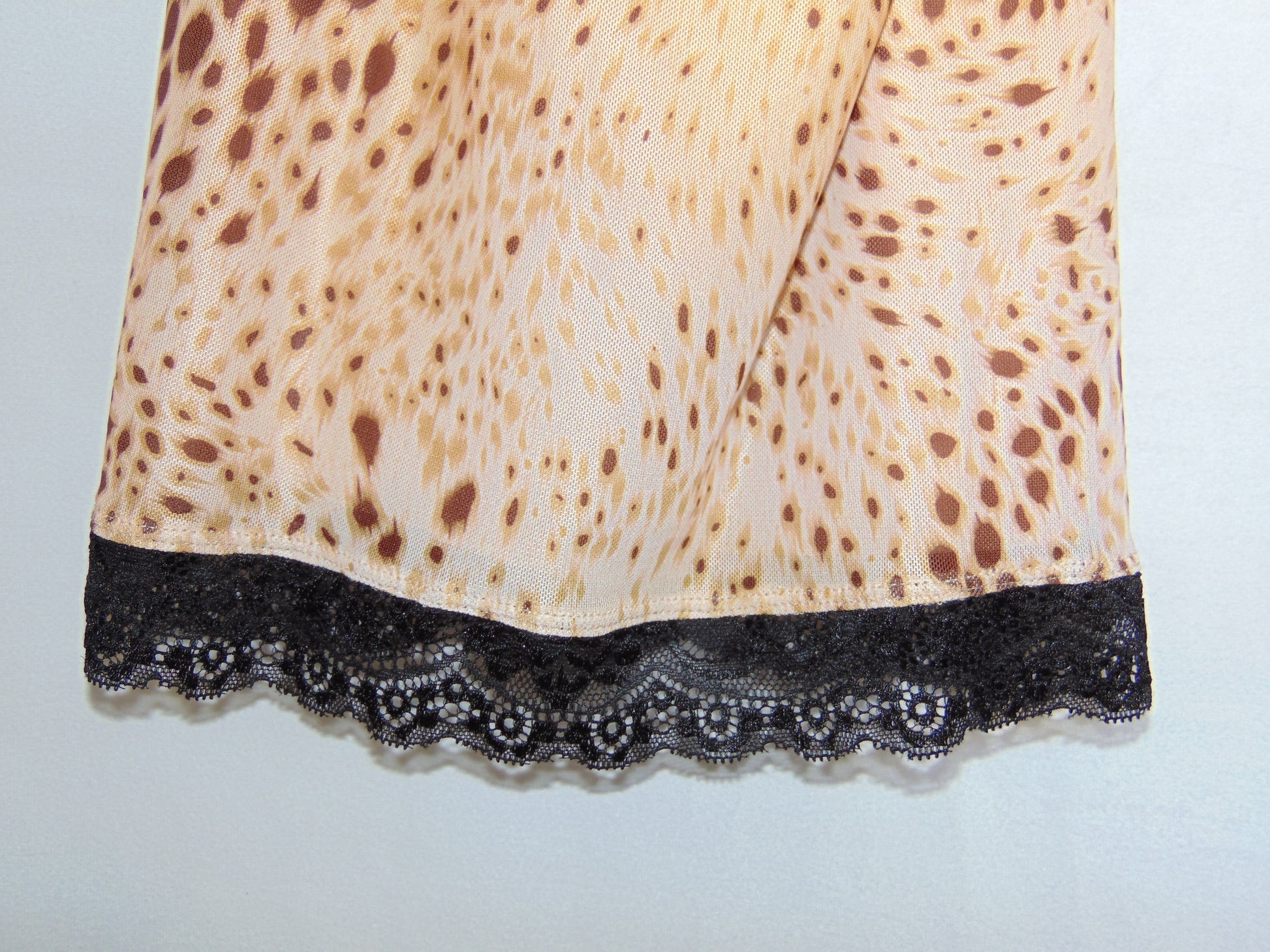 Cheetah print mesh mini dress with adjustable spaghetti straps for a minimal look with lace lining. Motel brand, tagged a XS.