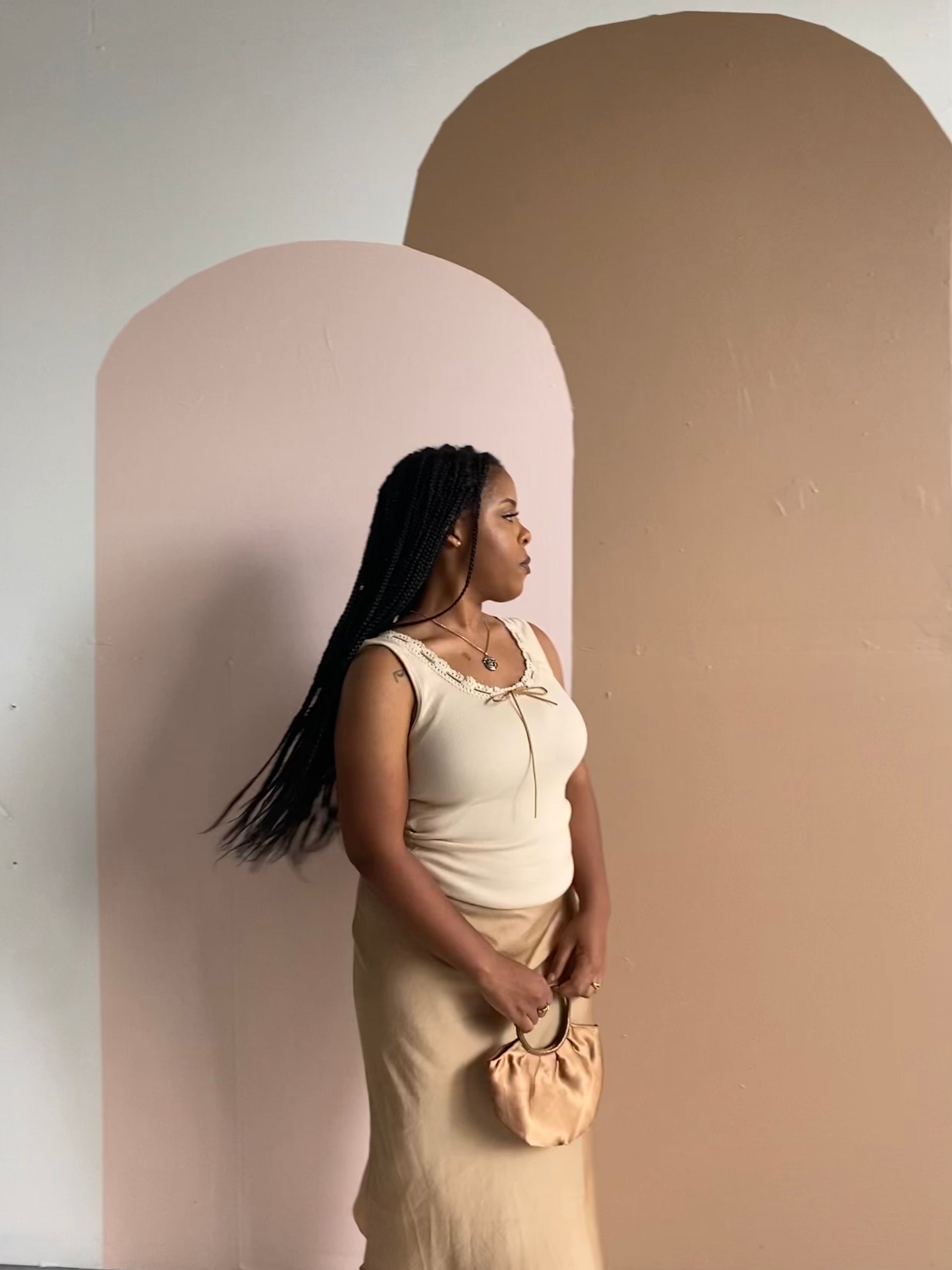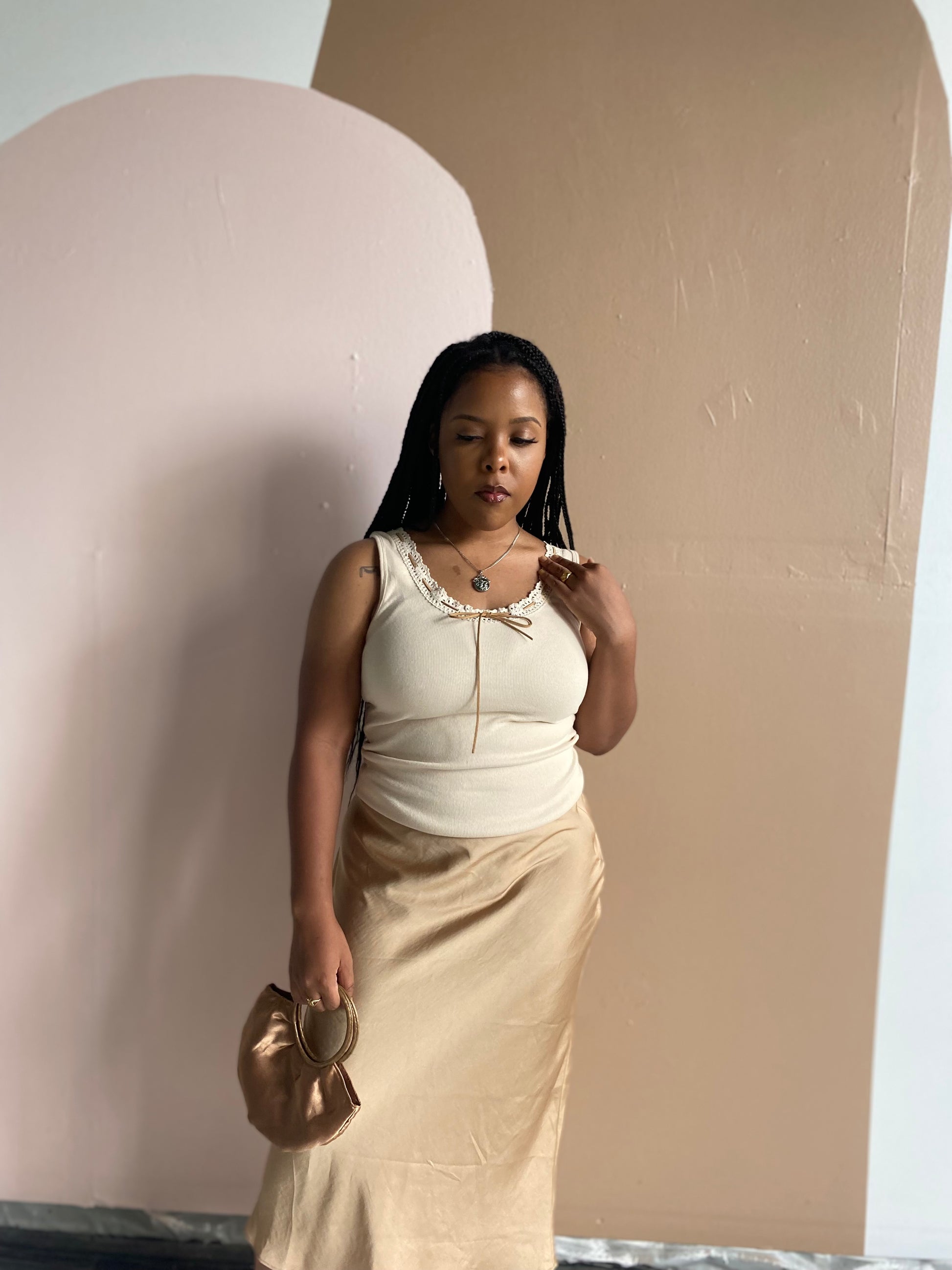 Y2K VINTAGE CREAM RIBBED TANK