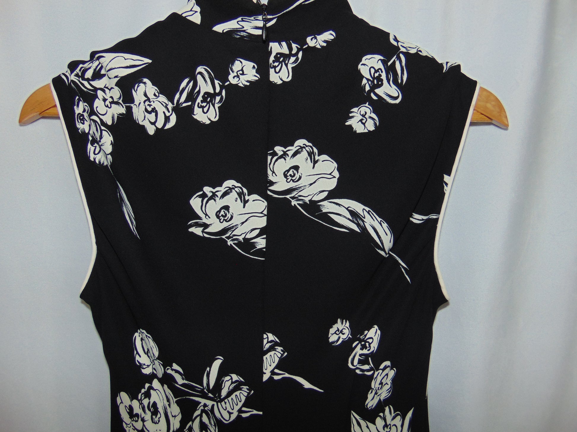 Beautiful black & white, oriental inspired cocktail dress by Evan Picone. Zipper back closure for a seamless, fitted look. Tagged a size 10.