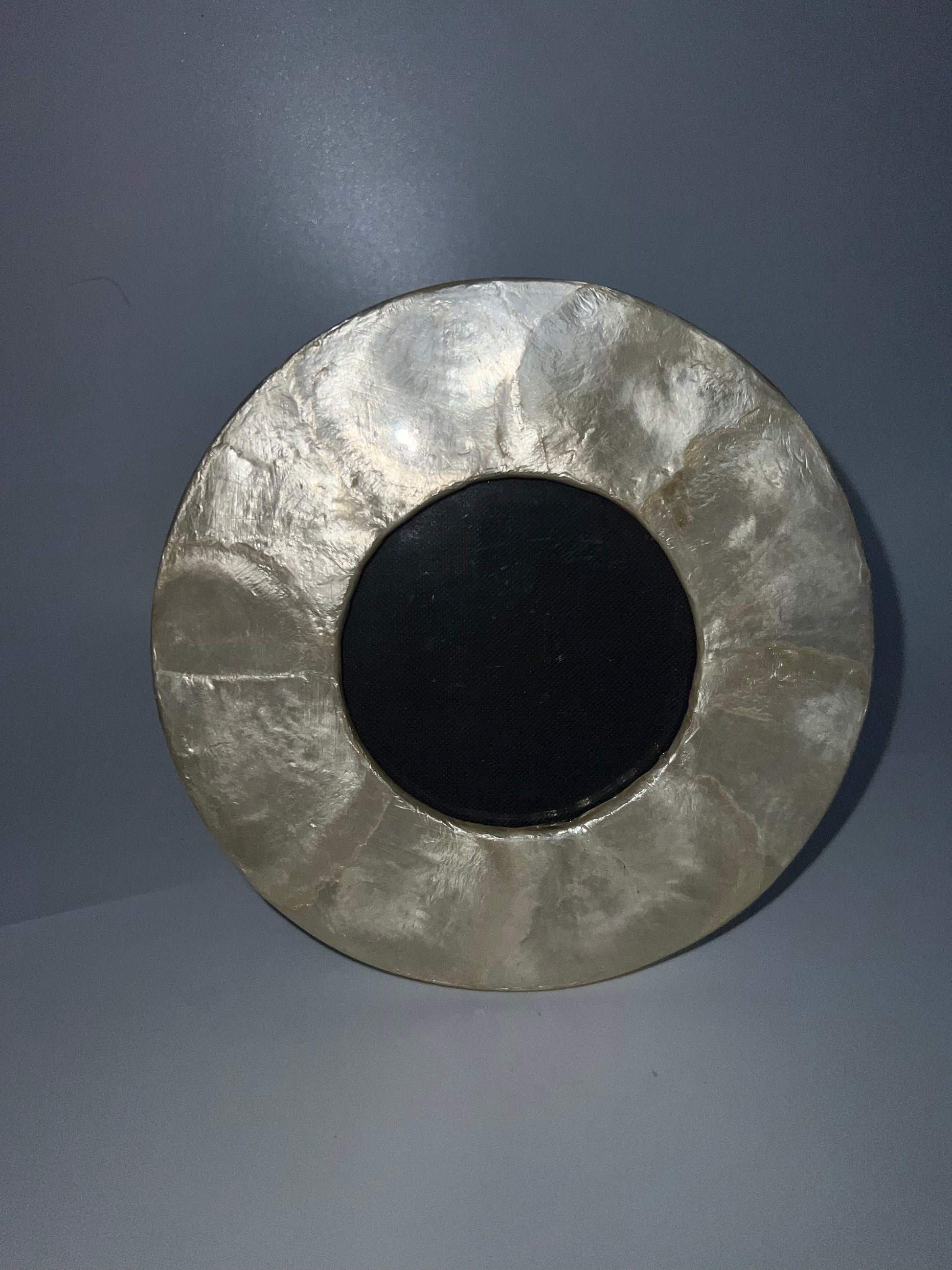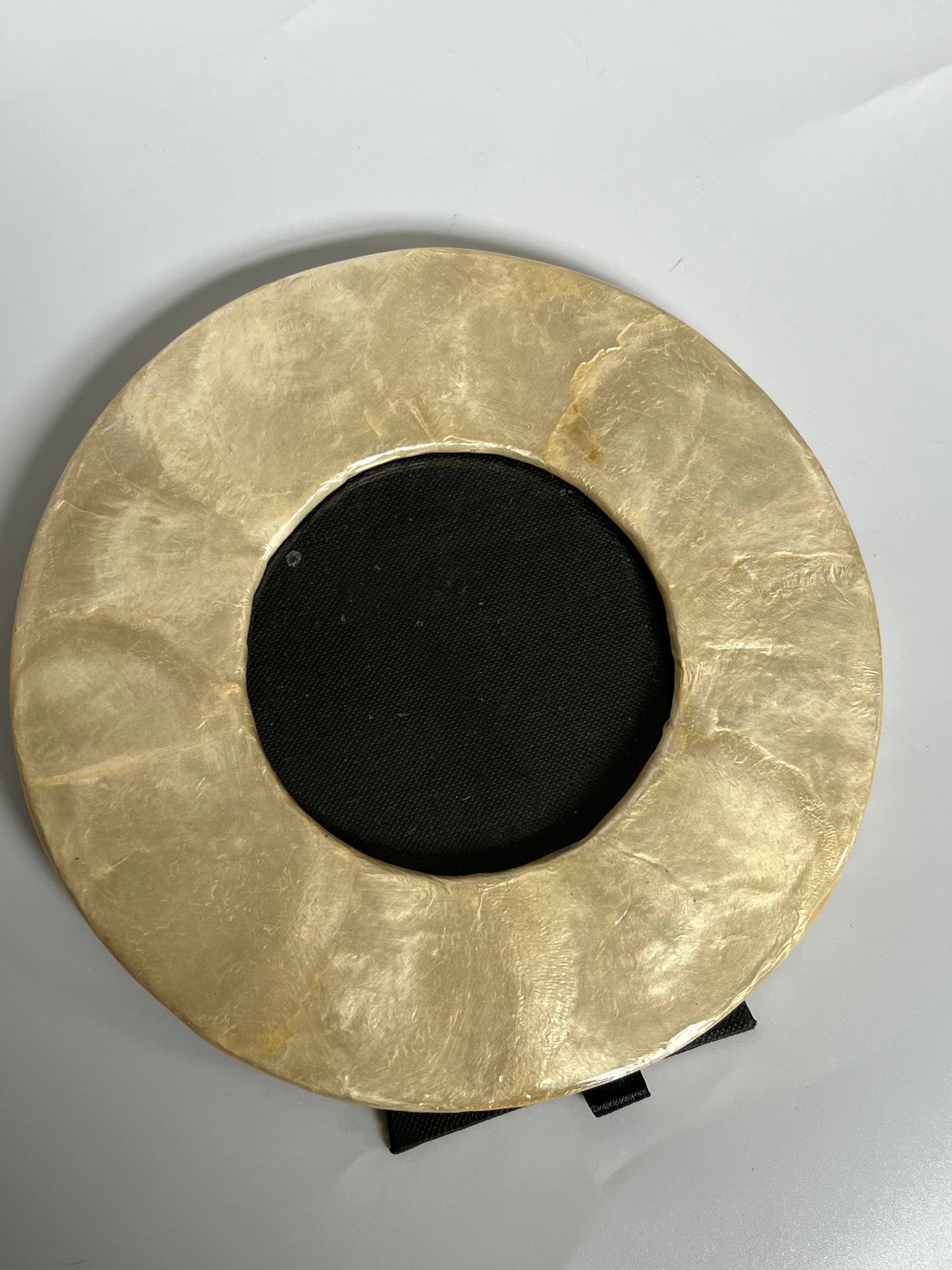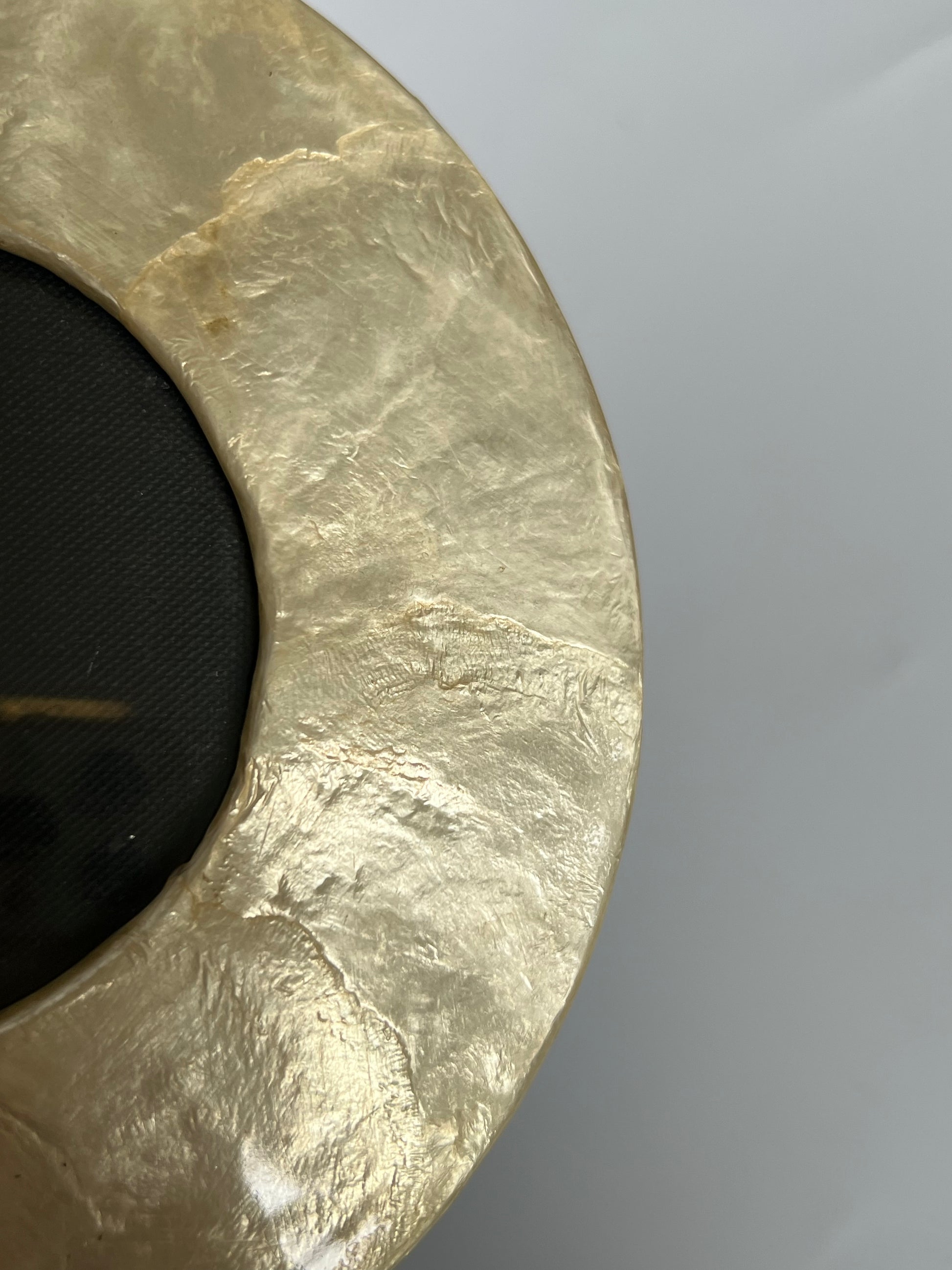 golden opal circular vintage photo frame with stand. This frame is so simple yet absolutely beautiful.