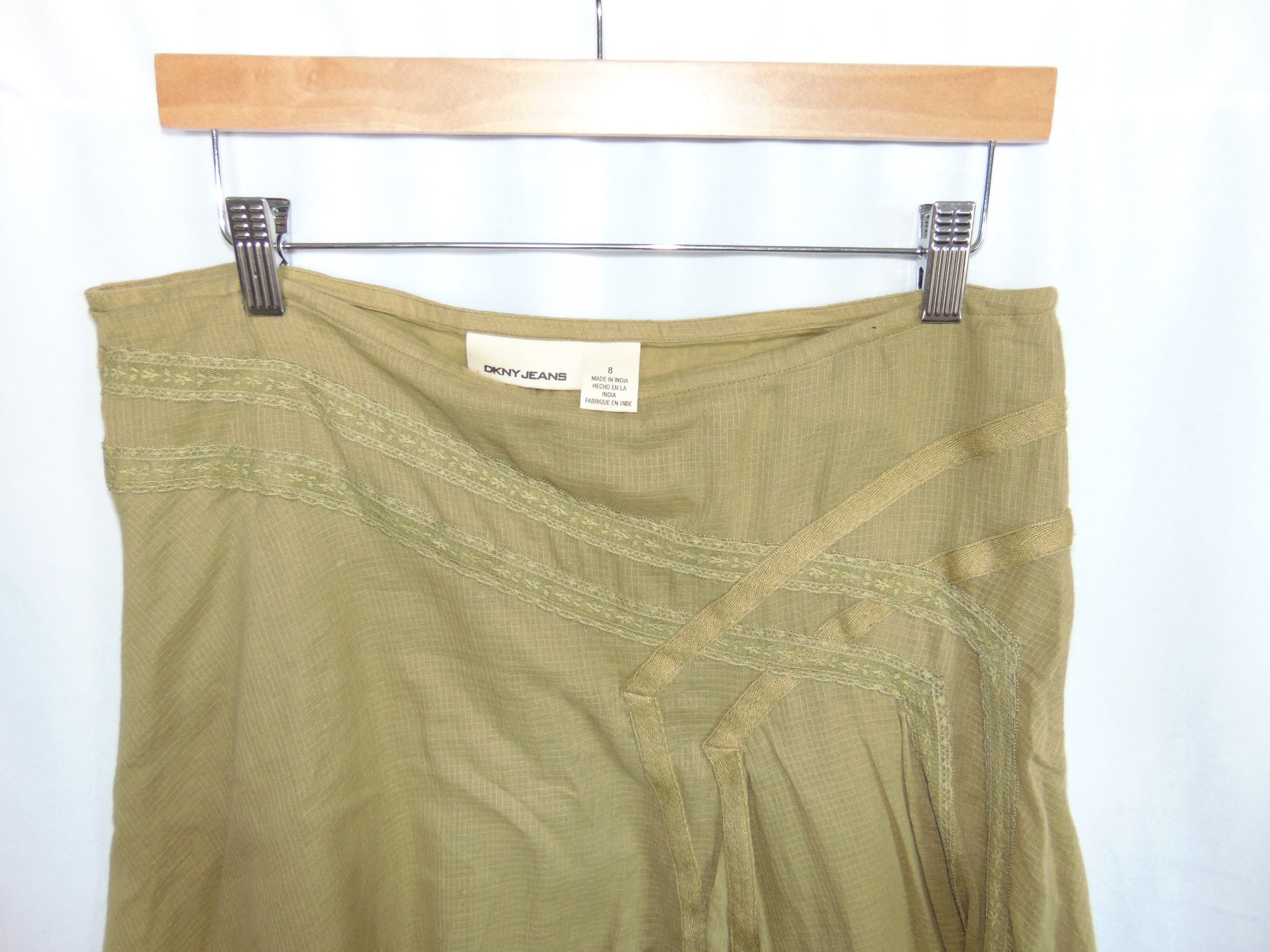 Vintage DKNY 100% cotton skirt. Lightweight and breathable with side zipper closure. Tagged a size 8.