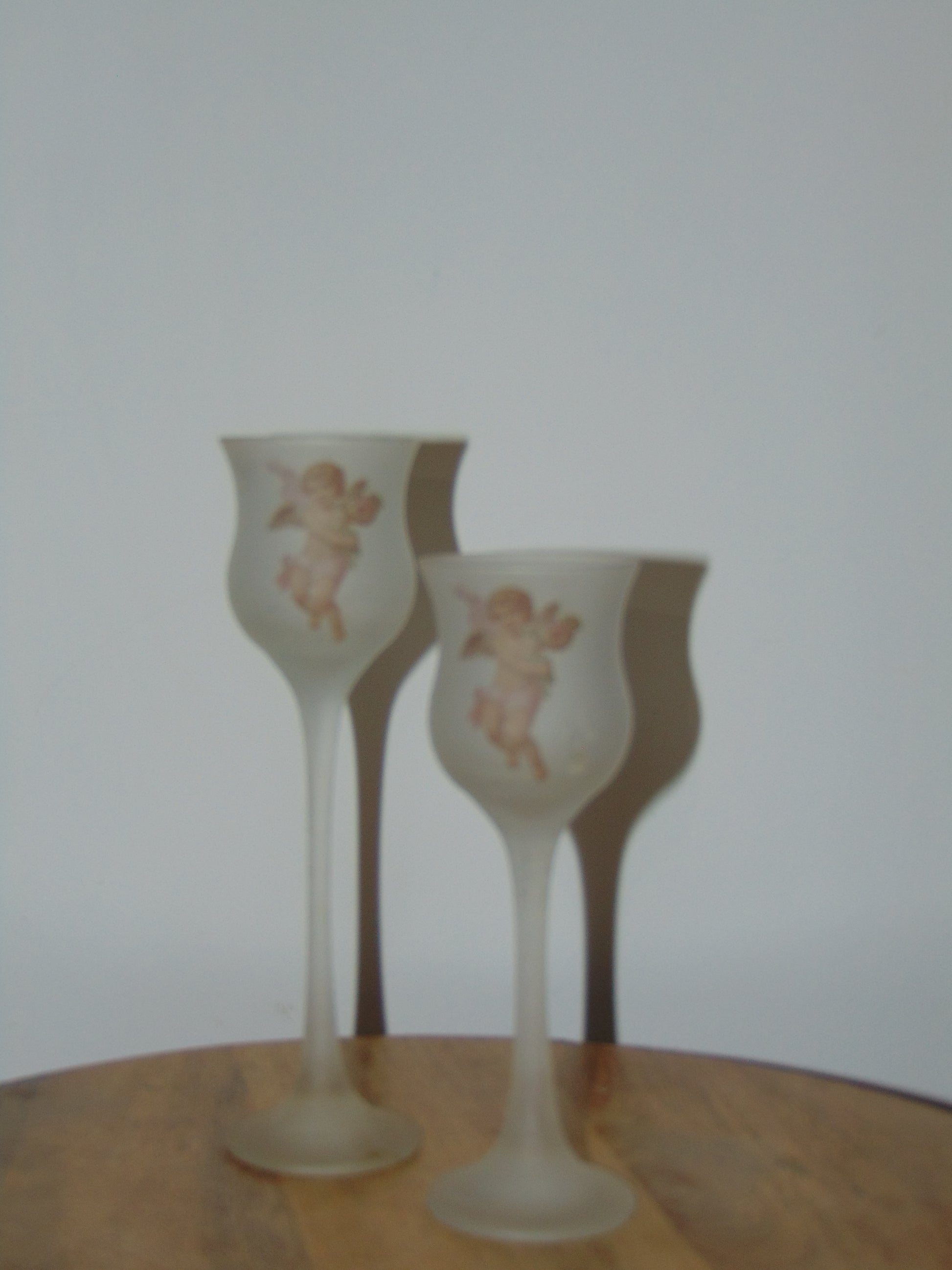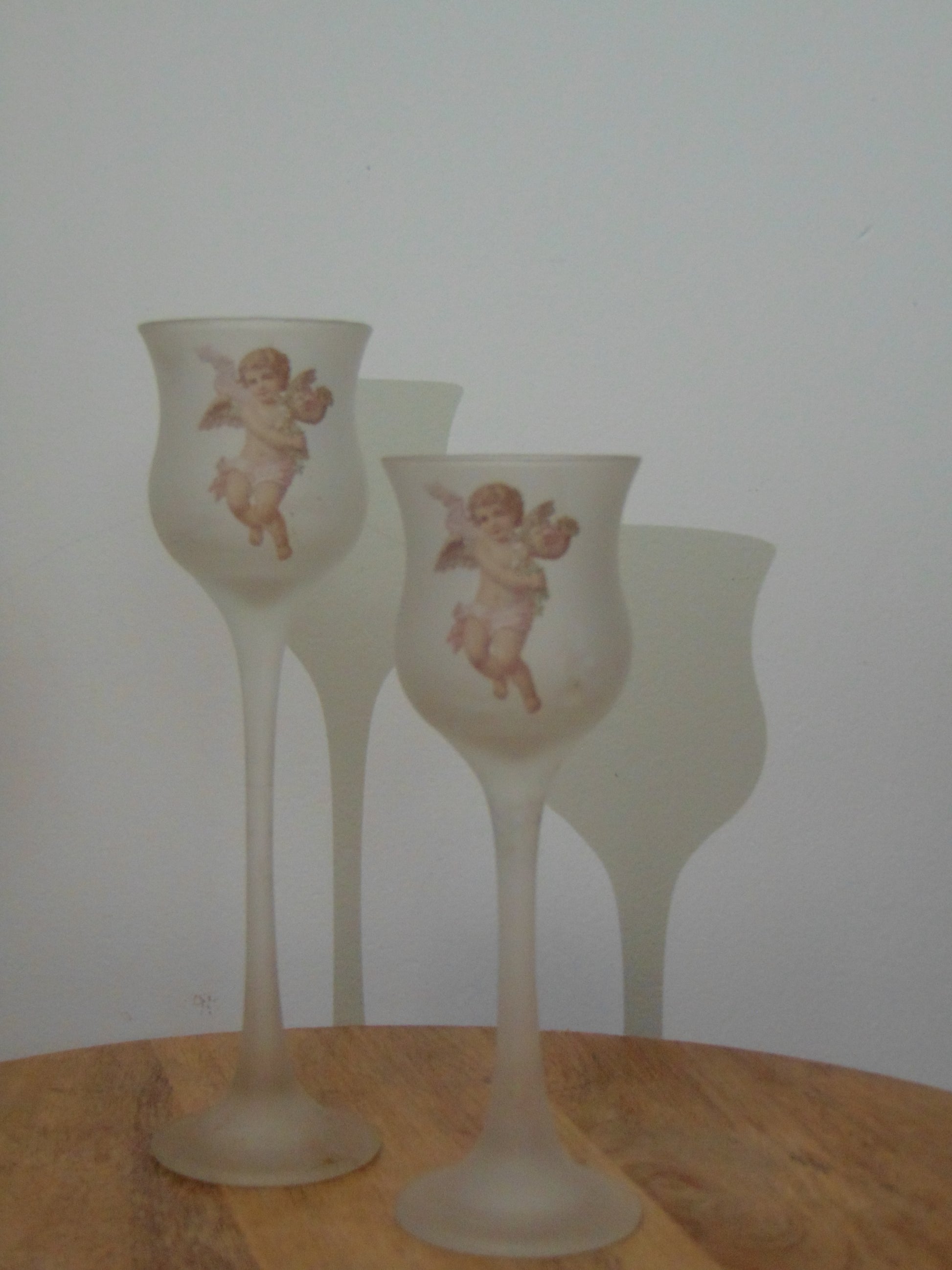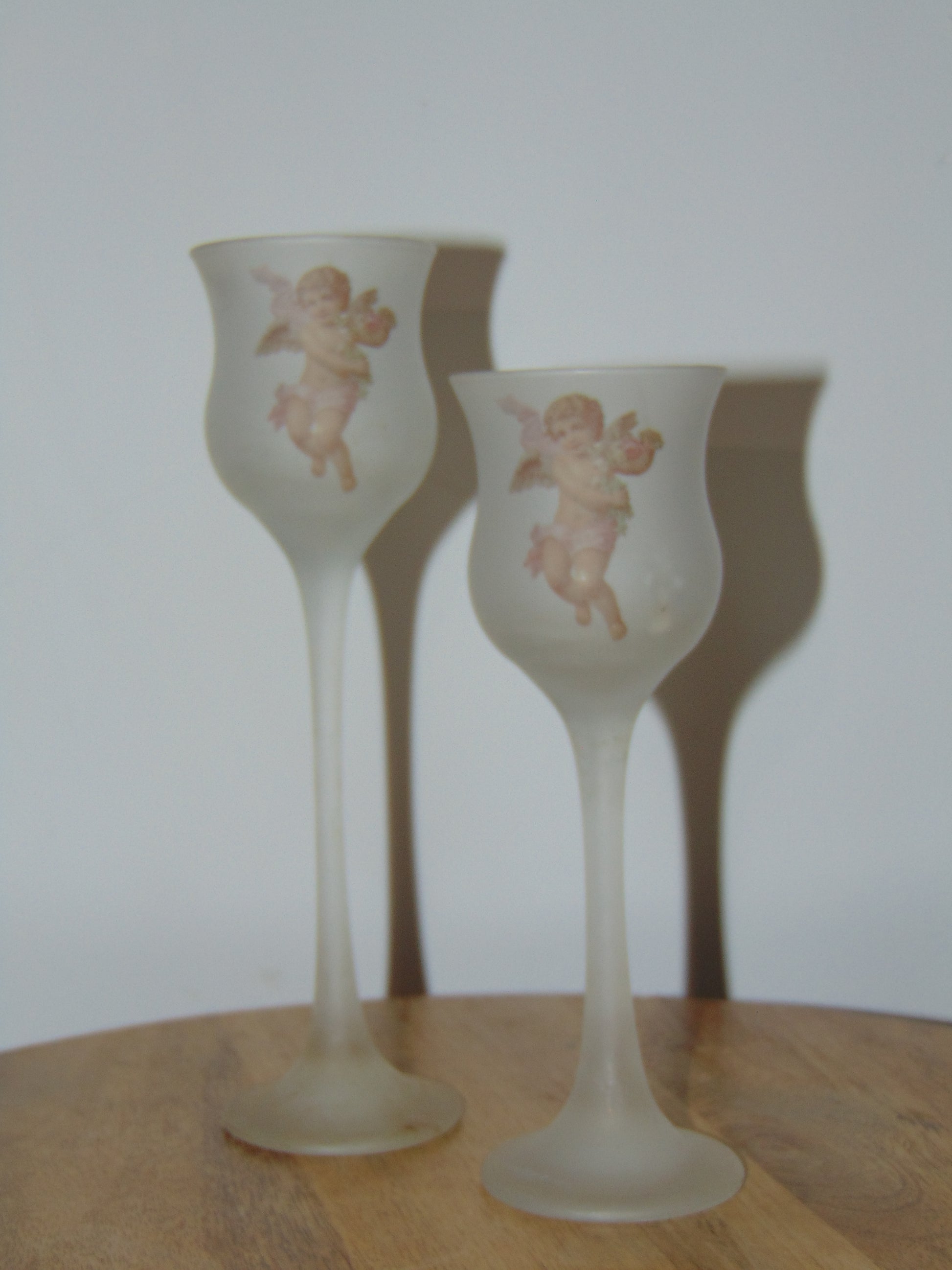 L.E. Smith Frosted Glass Cherub Stemmed Candle Holders
