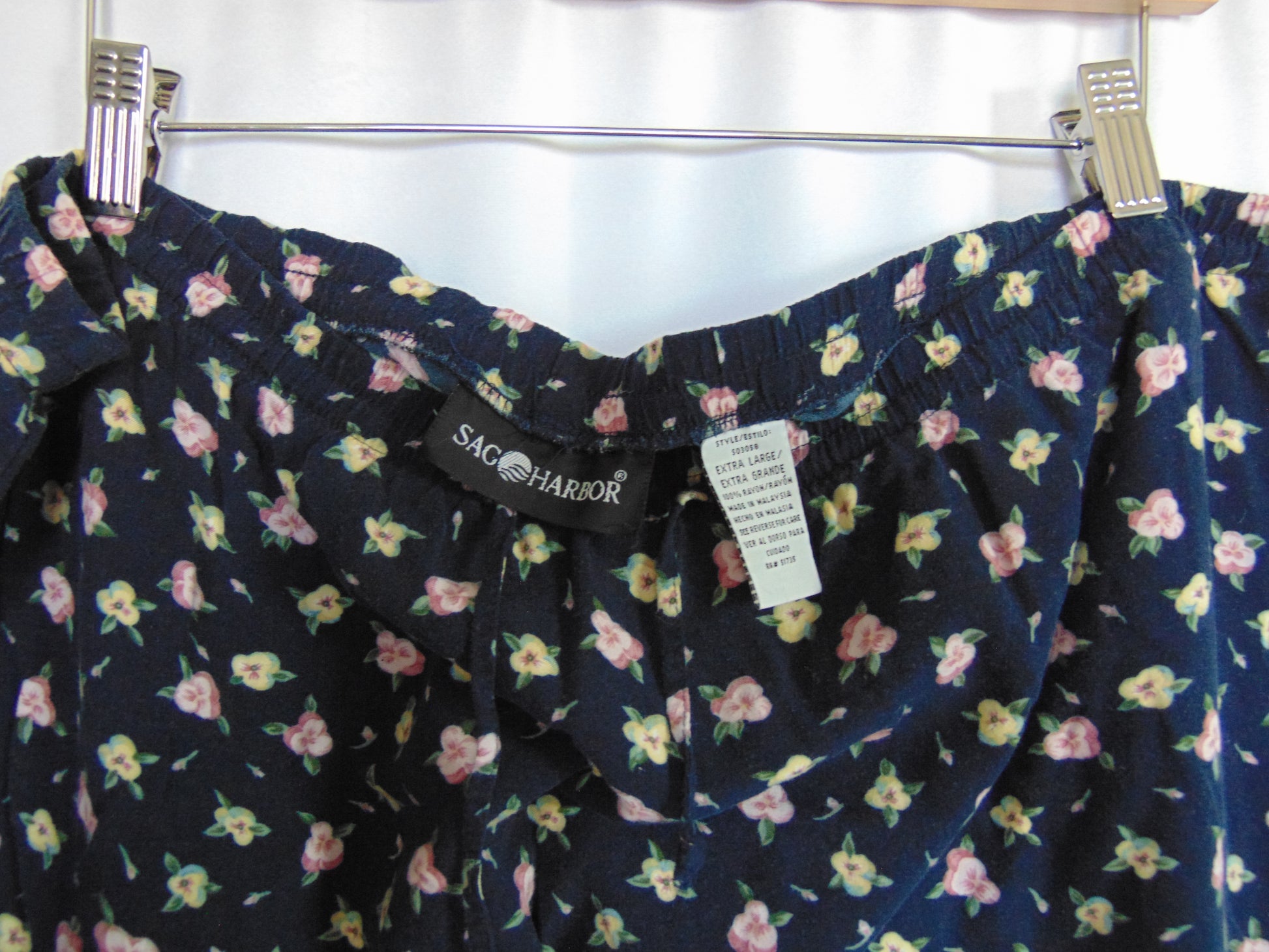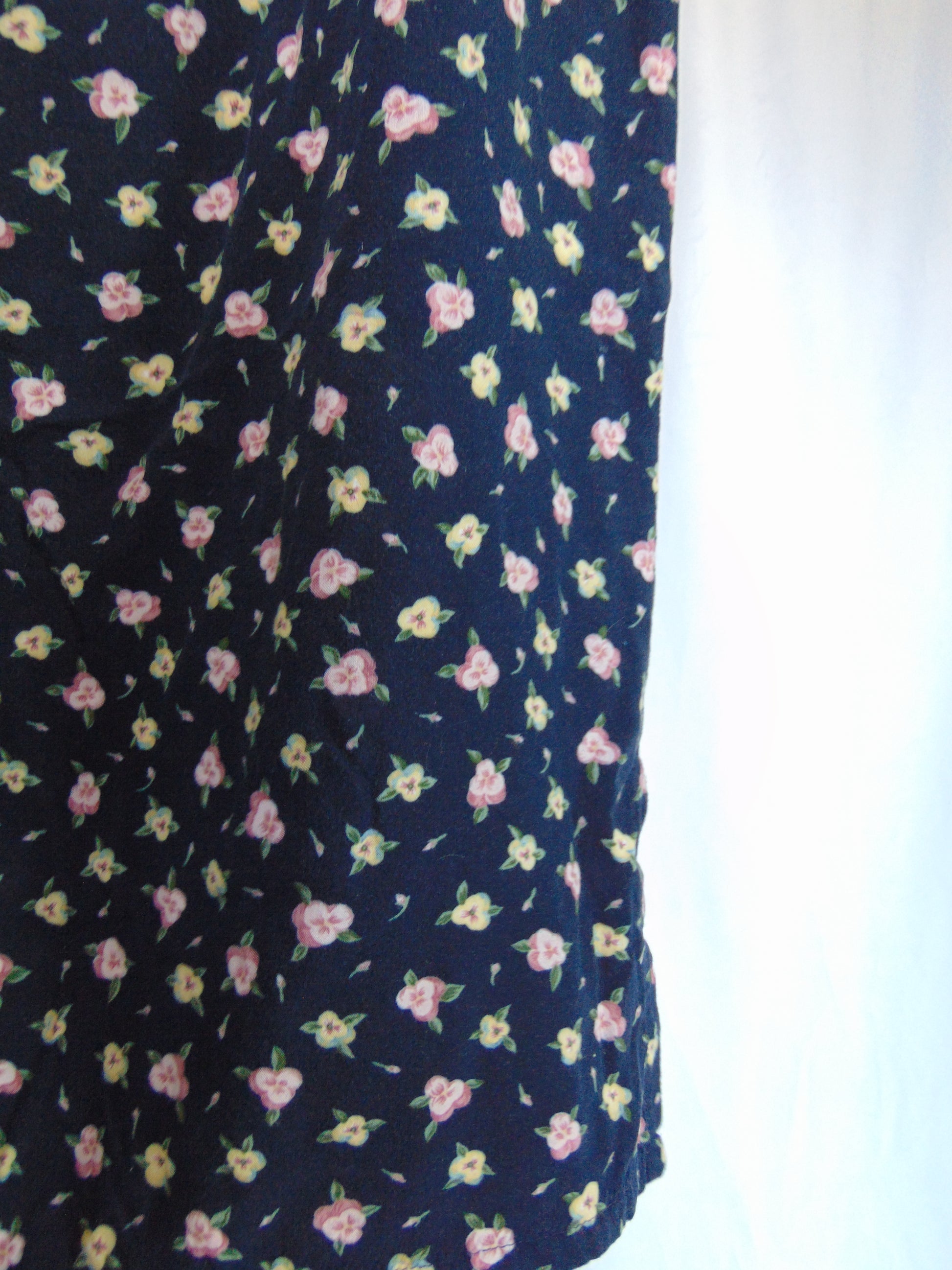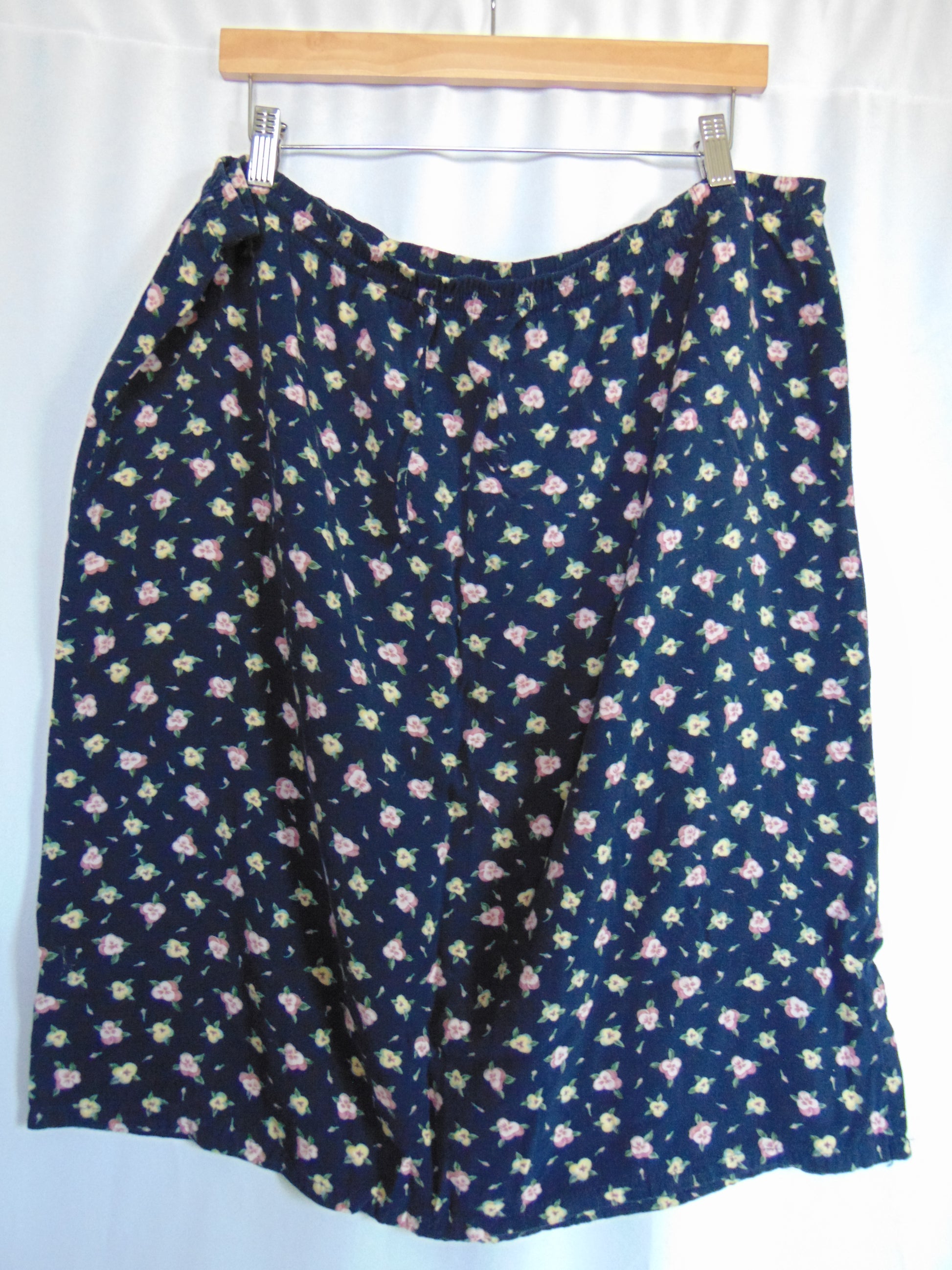 Vintage Sag Harbor navy blue skirt with dainty little pink flowers. This skirt is super stretchy & comfy and has an elastic waistband for extra support with the relaxed feel. Tagged a size XL. 100% Rayon