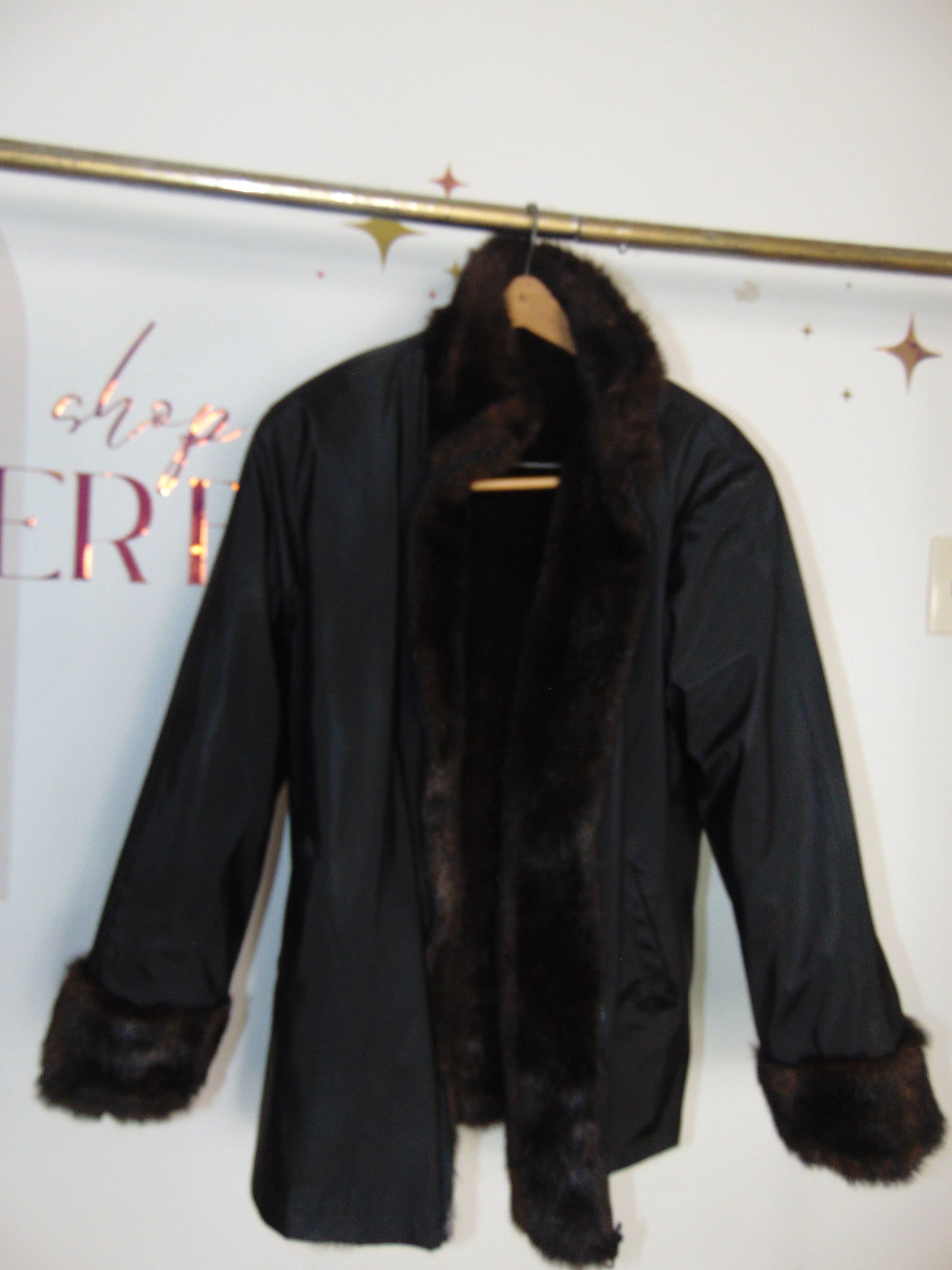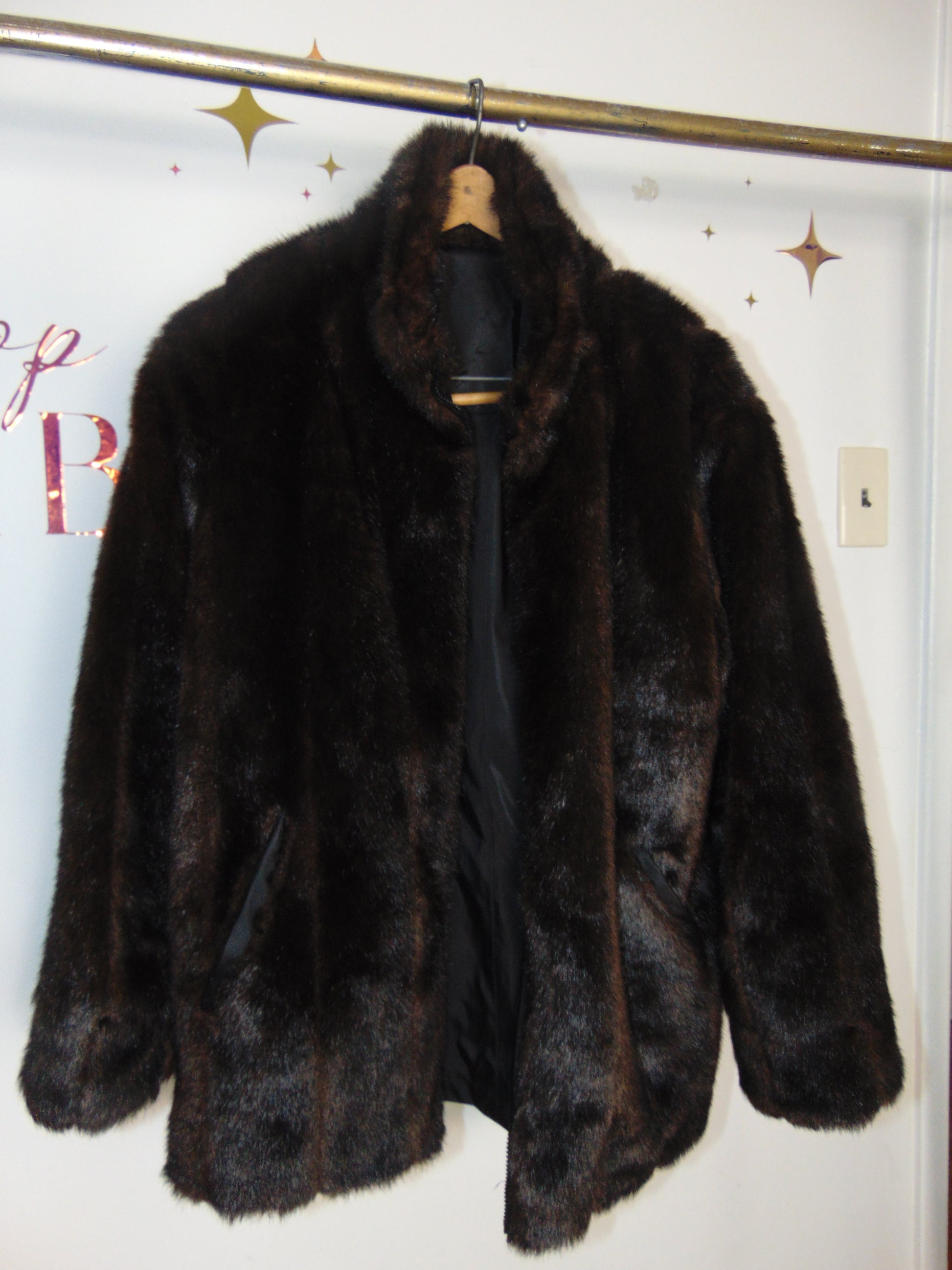 This deep brown faux fur coat is not only beautiful but it's also reversible! Channel your inner mob wife with the fur on the outside or for a more modest but still chic look, flip the jacket inside for the perfect fur trim coat.