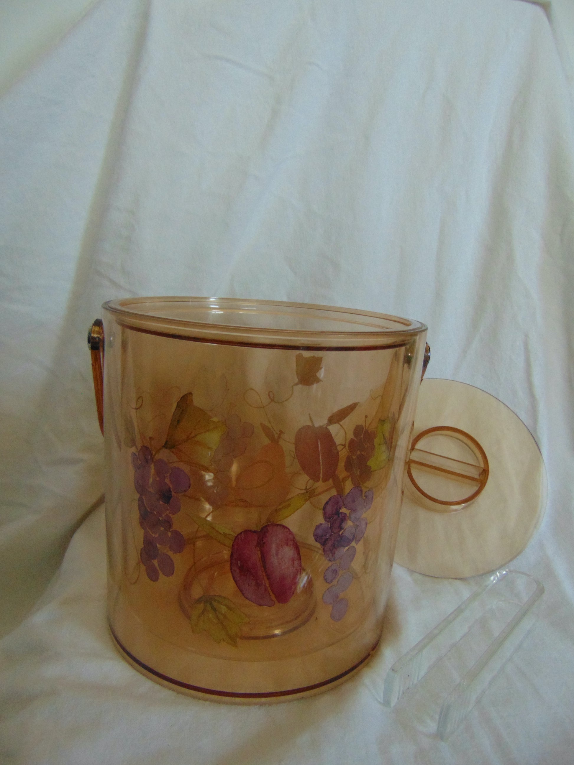 VINTAGE LUCITE ACRYLIC ICE BUCKET WITH FRUIT DESIGN