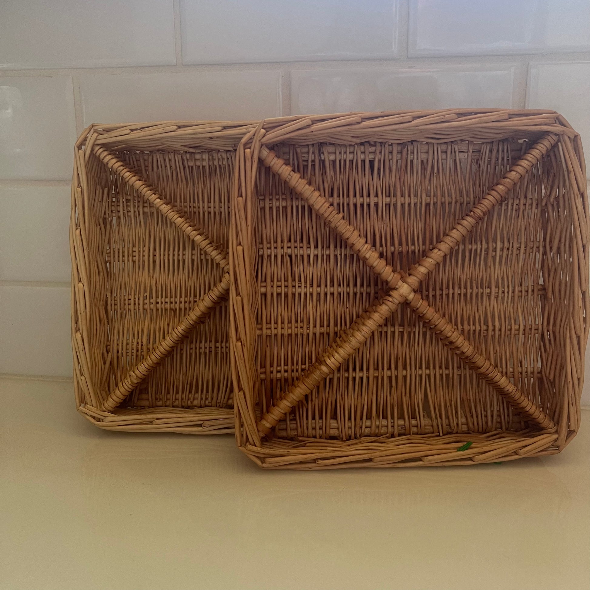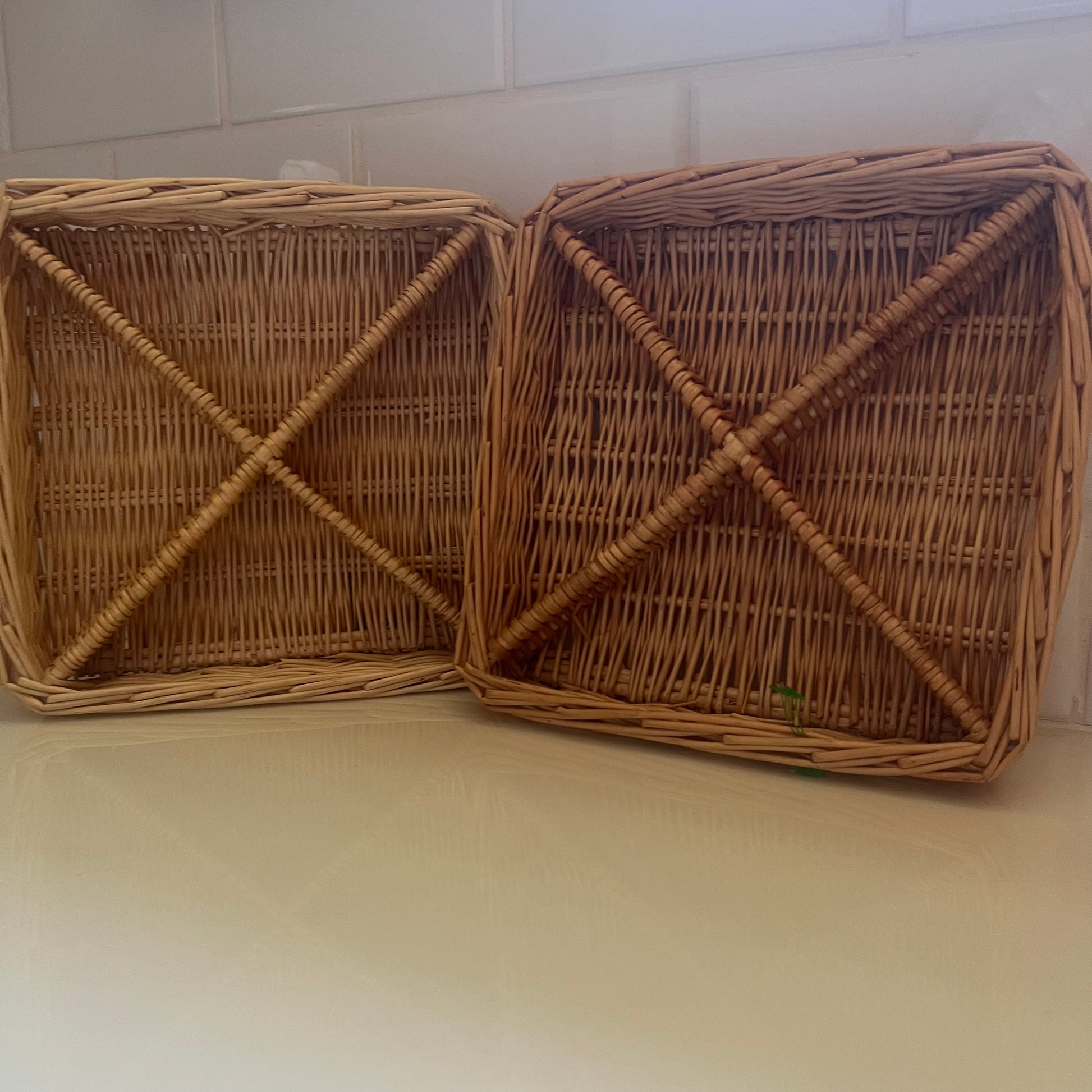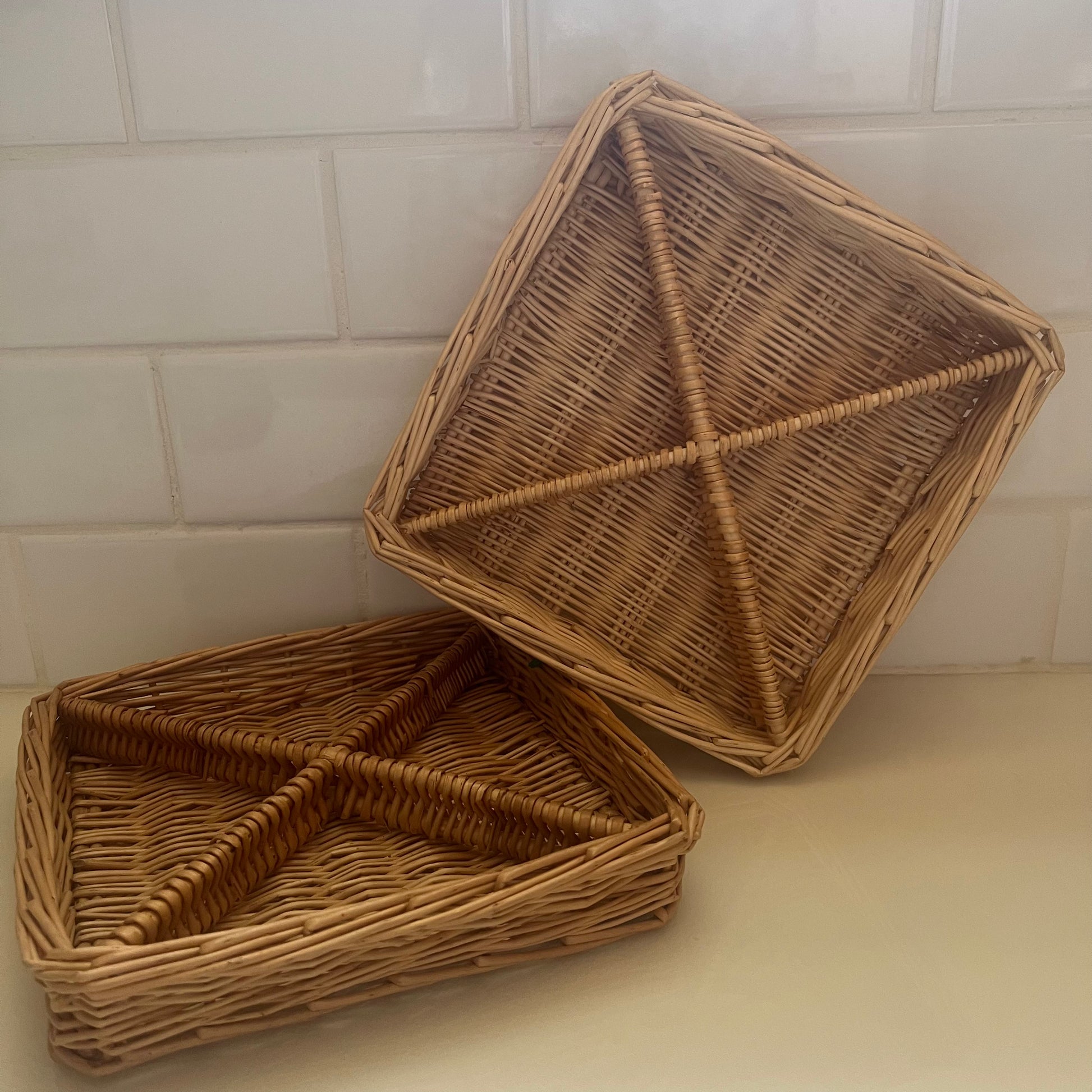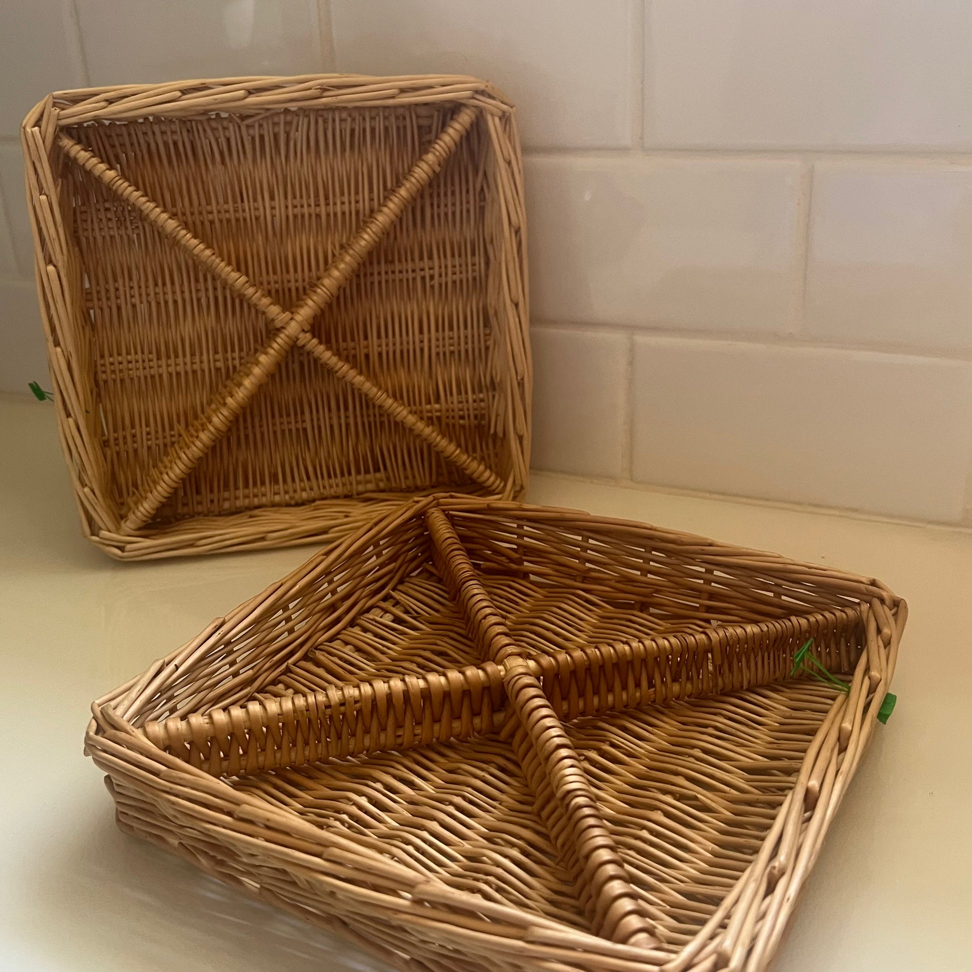 4 Section, vintage wicker baskets. These can be used on the table for party trays or on the wall for decor! Set of 2.