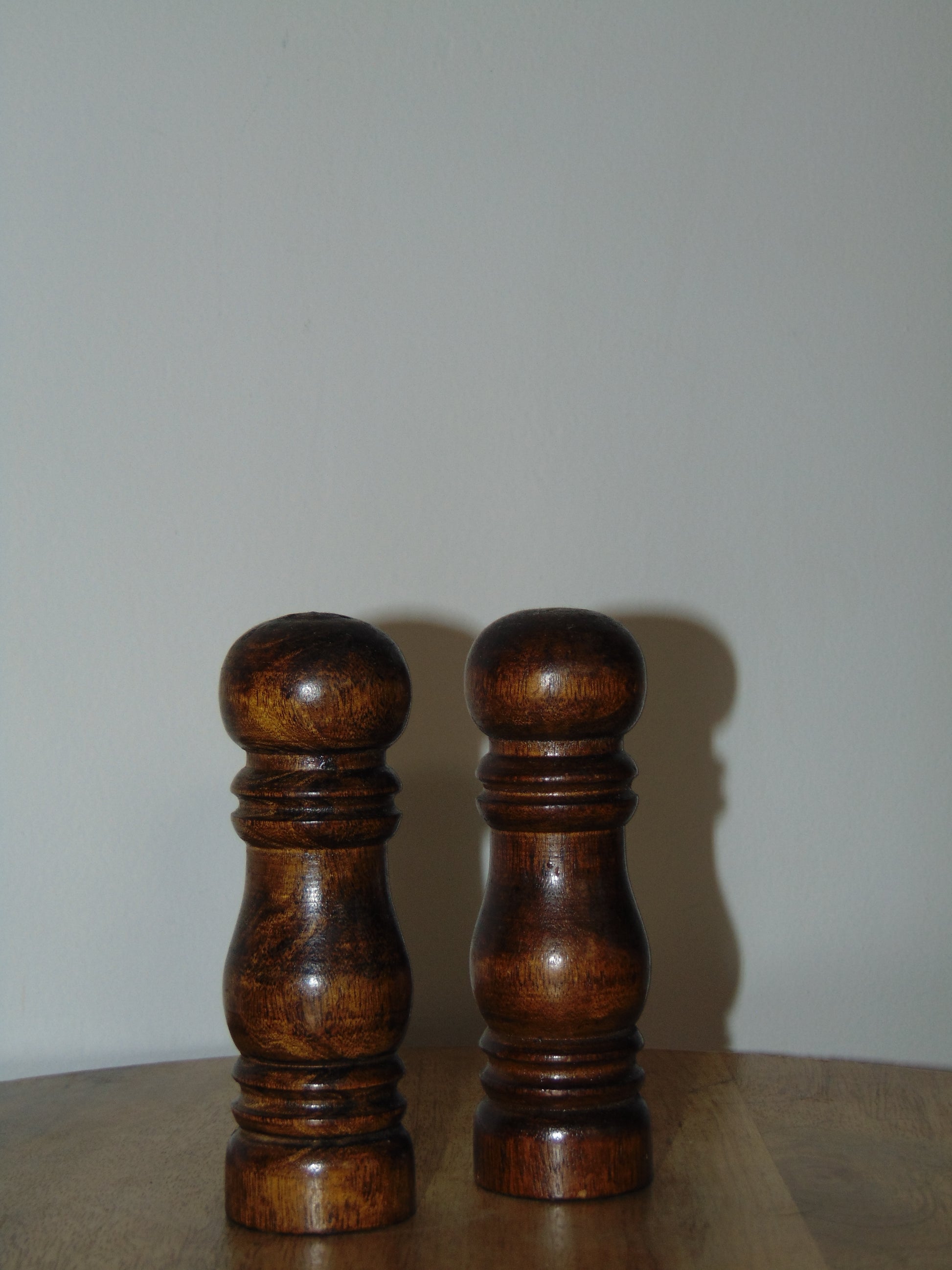 Bring a dash of retro flair to your kitchen with this charming 1960s salt and pepper shaker duo. Crafted from rich walnut wood, these mid-century modern gems showcase the quality and character that defined an era. Perfect for adding personality to your table while keeping your seasonings within arm's reach. A playful nod to vintage style that actually works.